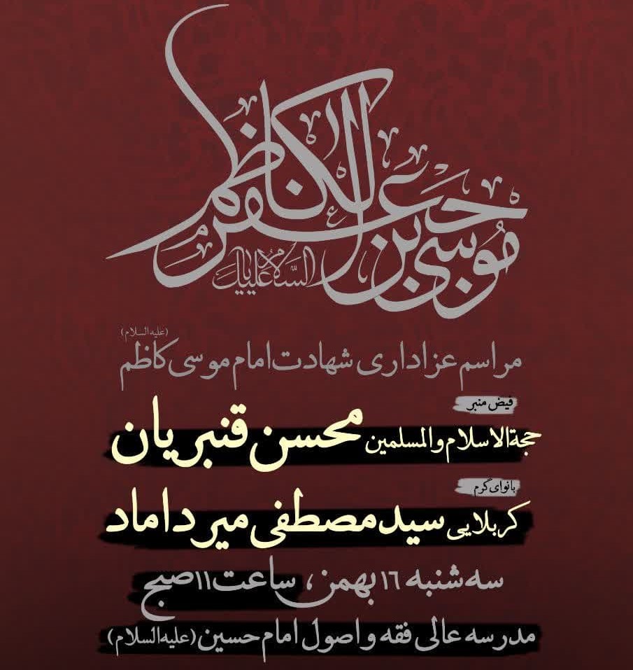 🔶 مراسم عزاداری شهادت حضرت امام موسیکاظم «علیهالسلام» و