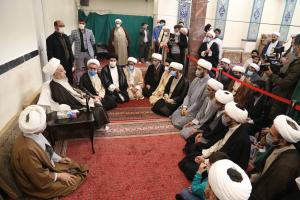 مراسم عمامه گذاری طلاب مدرسه توسط آیت الله العظمی مکارم
